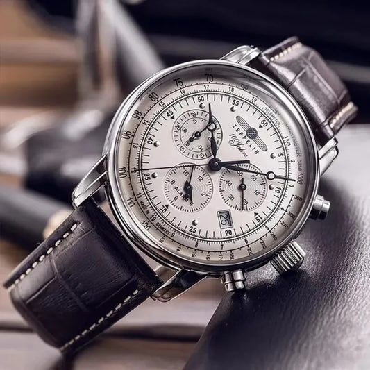Mens Leather Band Fashion Luxury Zeppelin Airship Business Casual Men Watches